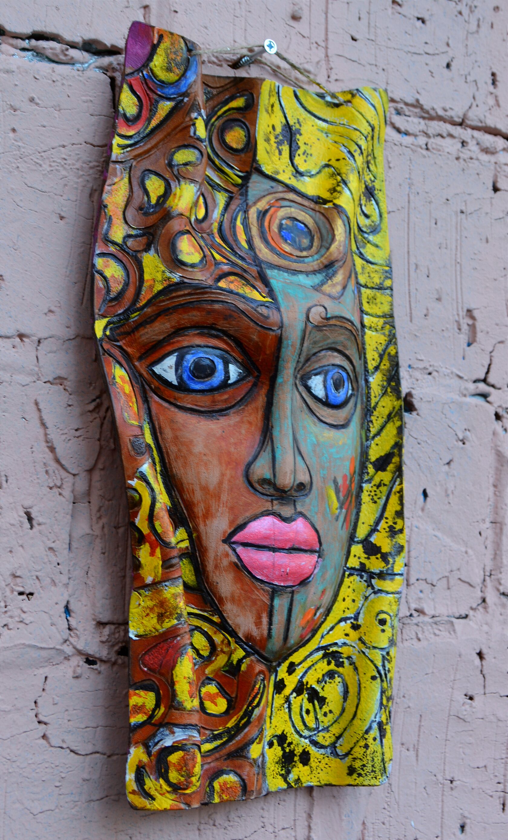 Авторская коллекционная маска из кожи с эффектом фактурного погружения. Резная кожа, патина Размер 16 на 23 см. Особенность картины заключается в инновационной технике обработки поверхности, создающей рельефные участки различной текстуры. Благодаря этому зритель получает незабываемый тактильный опыт, ощущая каждую деталь произведения кончиками пальцев,